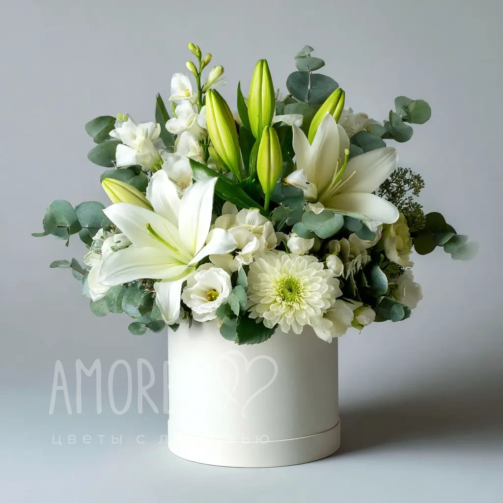 Лилии, фрезии и гербера создают ощущение свежести и бодрости, идеально для начала дня или приятного сюрприза.