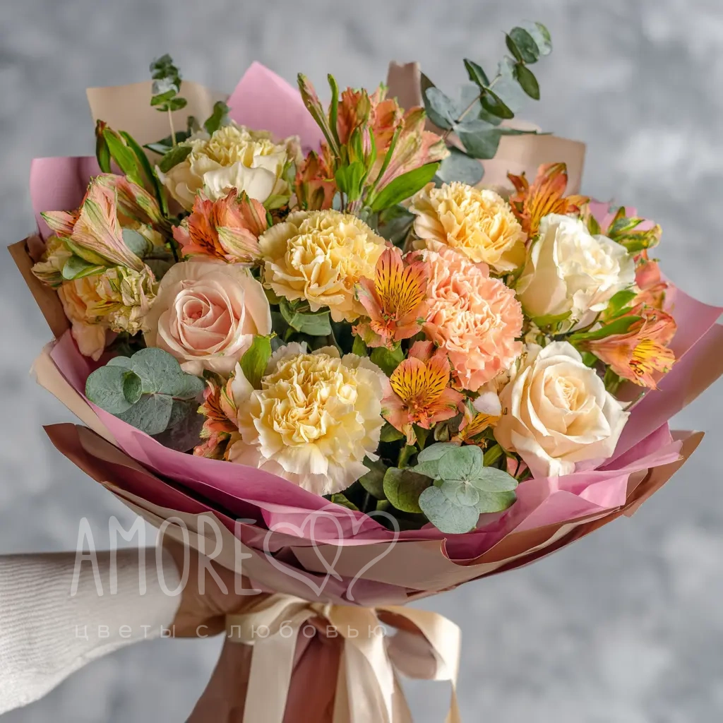 Тёплая гамма жёлтых, персиковых и коралловых оттенков. Напоминает самые красивые моменты летнего заката.