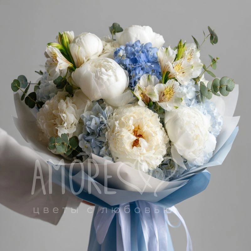Лёгкий, как воздух, букет из пионов, создающий ощущение полёта и свежести. Универсальный вариант для романтического подарка, знака внимания или дополнения к основному презенту.