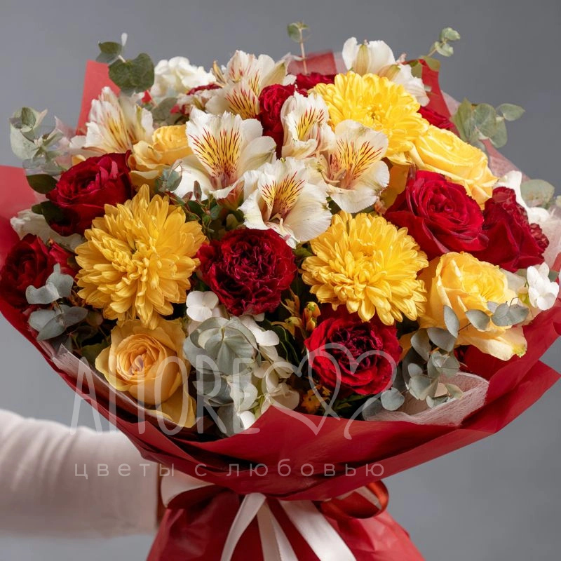 Лёгкий и нежный букет, вдохновлённый сентябрьским утром. В нём сочетаются хрупкость и лёгкость хризантем с мягкой осенней цветовой палитрой. Подойдёт для первых осенних поздравлений.