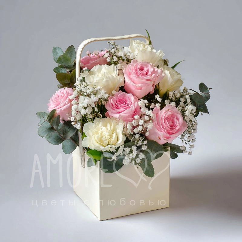 Яркая, как конфета, композиция в сумочке поднимает настроение с первого взгляда. Подойдёт для спонтанного подарка или тёплого жеста внимания.