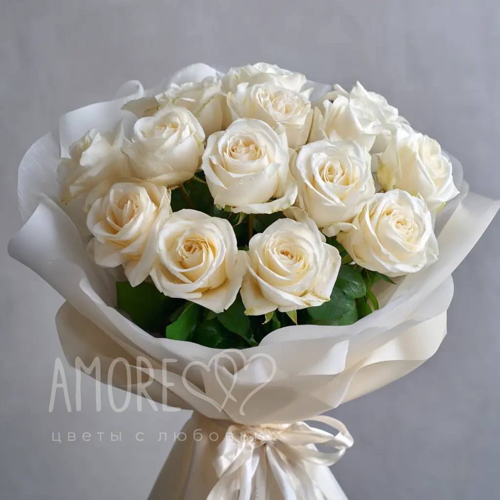 Стильный и торжественный букет из 15 белоснежных эквадорских роз высотой 50 см. Идеален для свадеб, юбилеев и других важных событий. Эквадорские розы — это крупные бутоны, насыщенный аромат и безупречная свежесть.