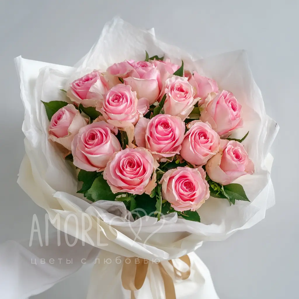 Элегантный букет из 15 розовых роз с крупными бутонами. Эквадорские сорта славятся своей стойкостью и внешним видом — подарите утончённость и заботу в одном букете.