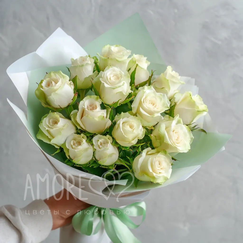 Сдержанный и лаконичный букет из 15 белых роз отечественного производства — выбор для тех, кто ценит натуральность и простоту. Подойдёт как для деловых случаев, так и для поздравлений близких.