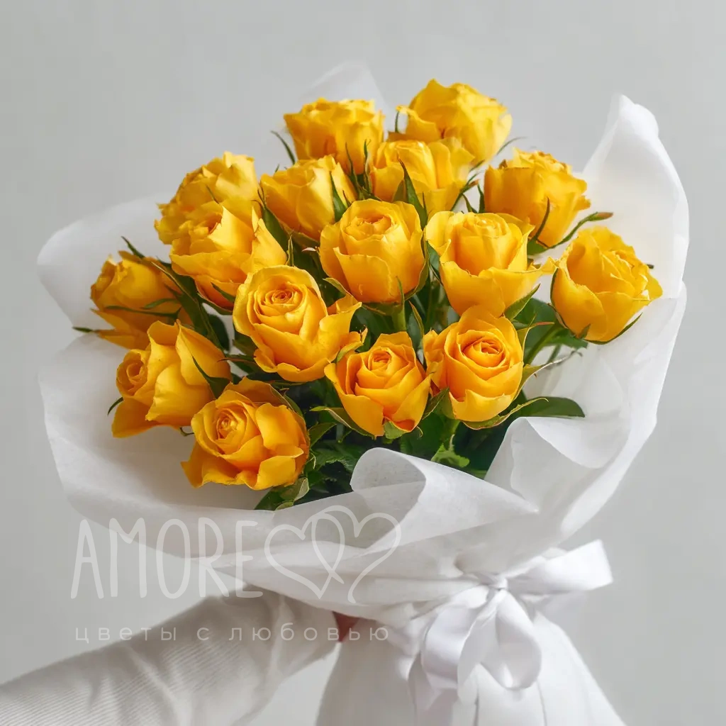 Яркий, солнечный букет из 15 жёлтых роз длиной 40 см. Символ радости, дружбы и позитива. Кенийские розы в этом исполнении станут отличным подарком коллеге, подруге или близкому человеку.